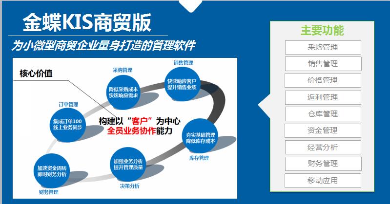 幫助企業高效經營商品、理清資金。金蝶KIS商貿標準版,簡單專業、易學易用,是小型商貿企業的最佳選擇。